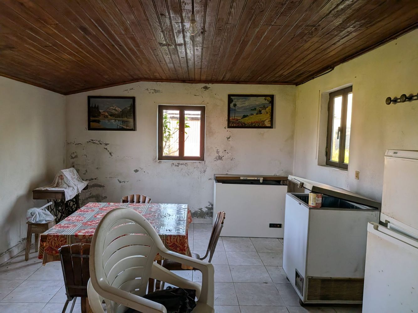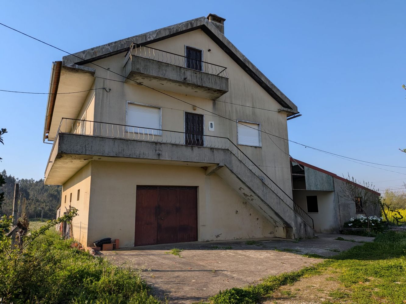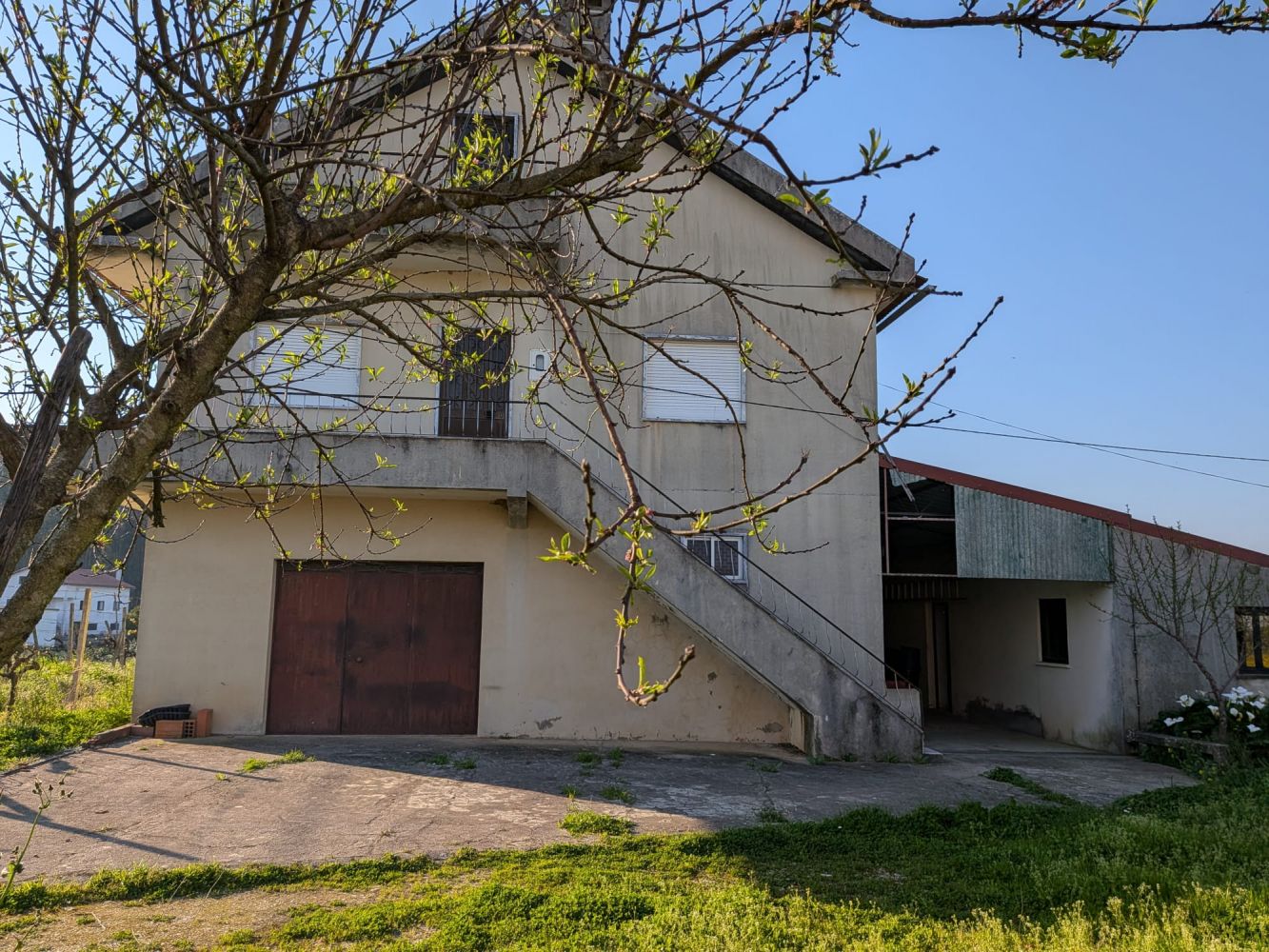 Excelente oportunidade Casa de habitação composta por dois andares . O primeiro com 3 quartos e 1 casa de banho, ala ampla com varanda e cozinha. No r/c sala e cozinha com uma área grande, um quarto , casa de banho grande e algumas divisões para arrumos. No exterior duas boas garagens, um tanque para rega e um poço com muita água. O terreno com uma área aproximada de 2700 m² conta com várias árvores de fruto.